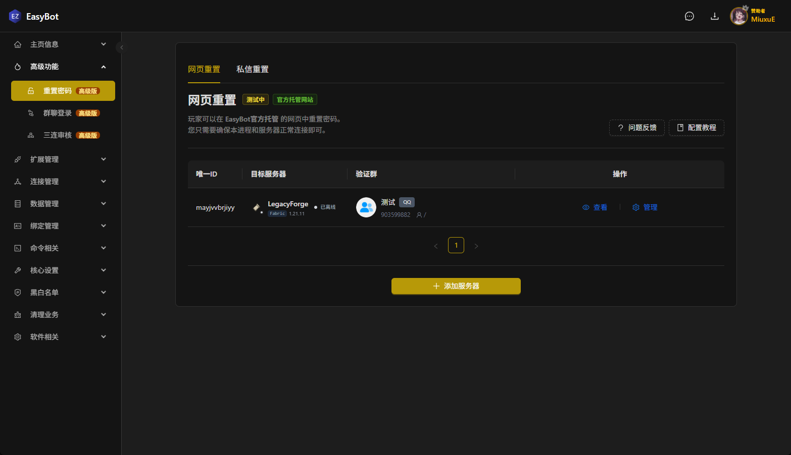 EasyBot托管的网站中重置密码,你只需要确认您的EasyBot和服务器正常连接即可