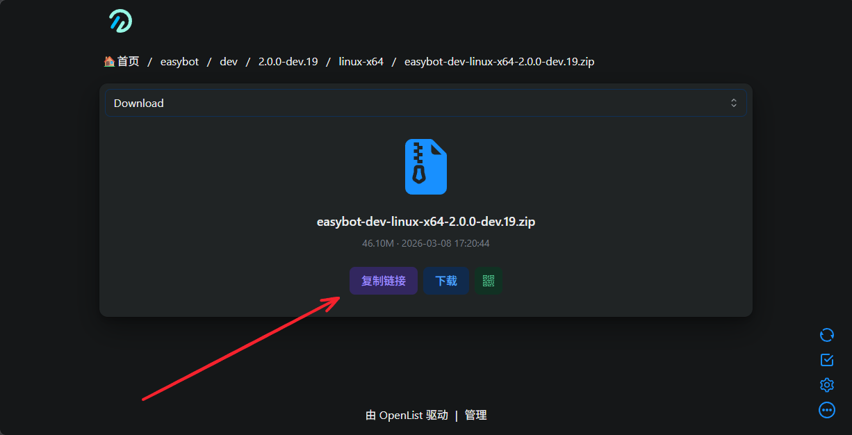 前往 https://files.inectar.cn/easybot/dev 找到最新版本