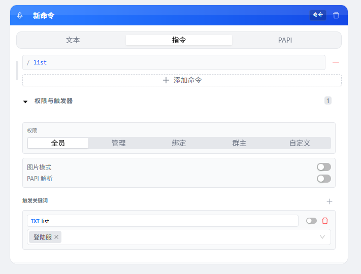 关于运行命令时查询变量的 玩家账号 选择,目前最新开发板 EasyBot 已经支持多账号选择以及多种执行模式,请查看 多账号支持