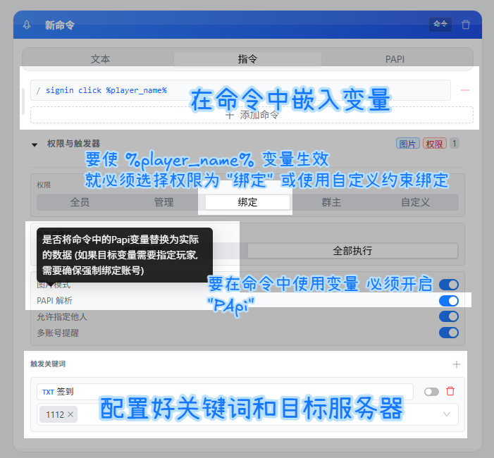 PlaceholderAPI - 命令权限必须改为绑定账号的用户 否则命令无法找到用户绑定的玩家账号