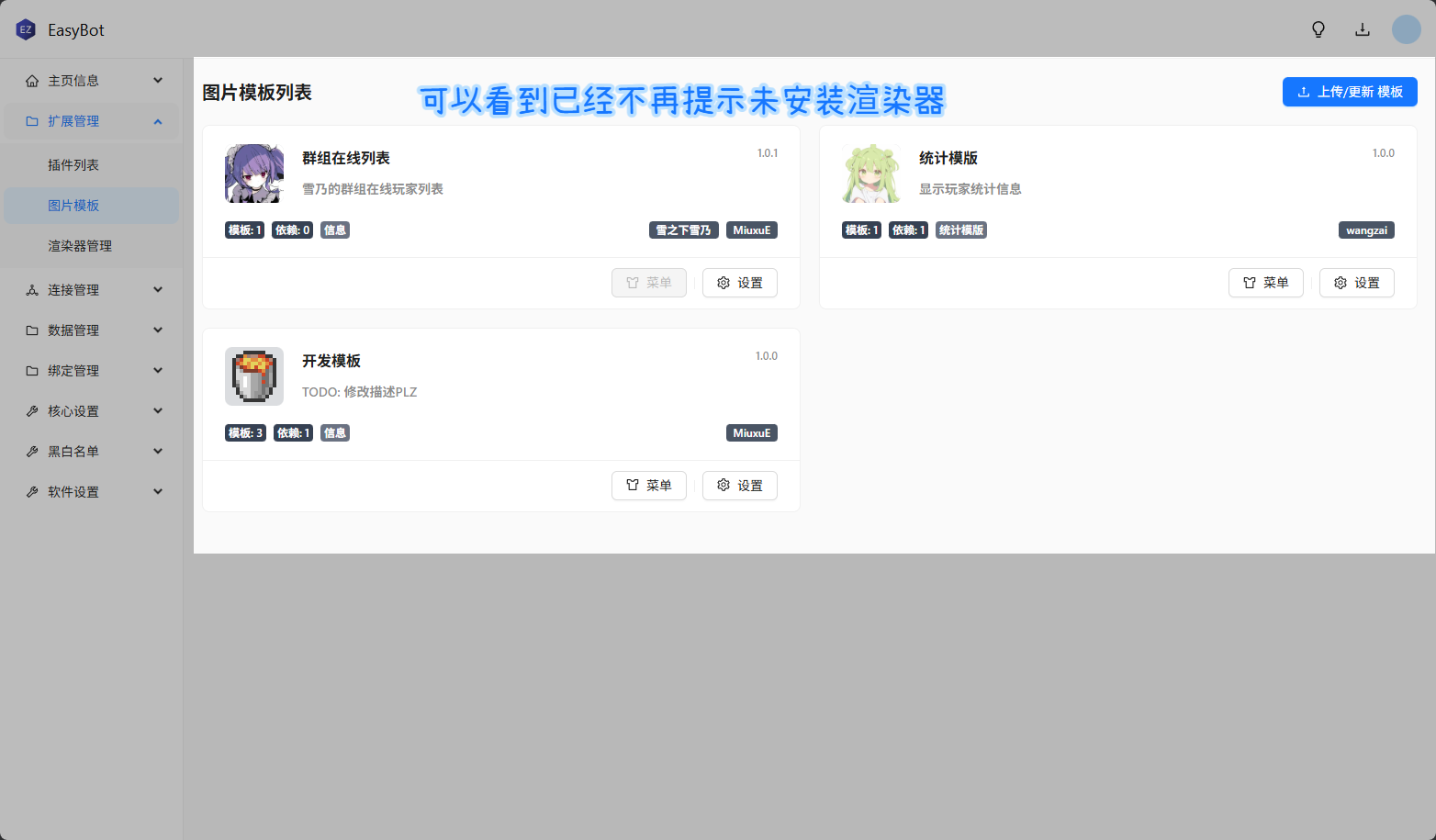 当你首次打开图片模板页面时,可能会注意到渲染器未安装的提示。