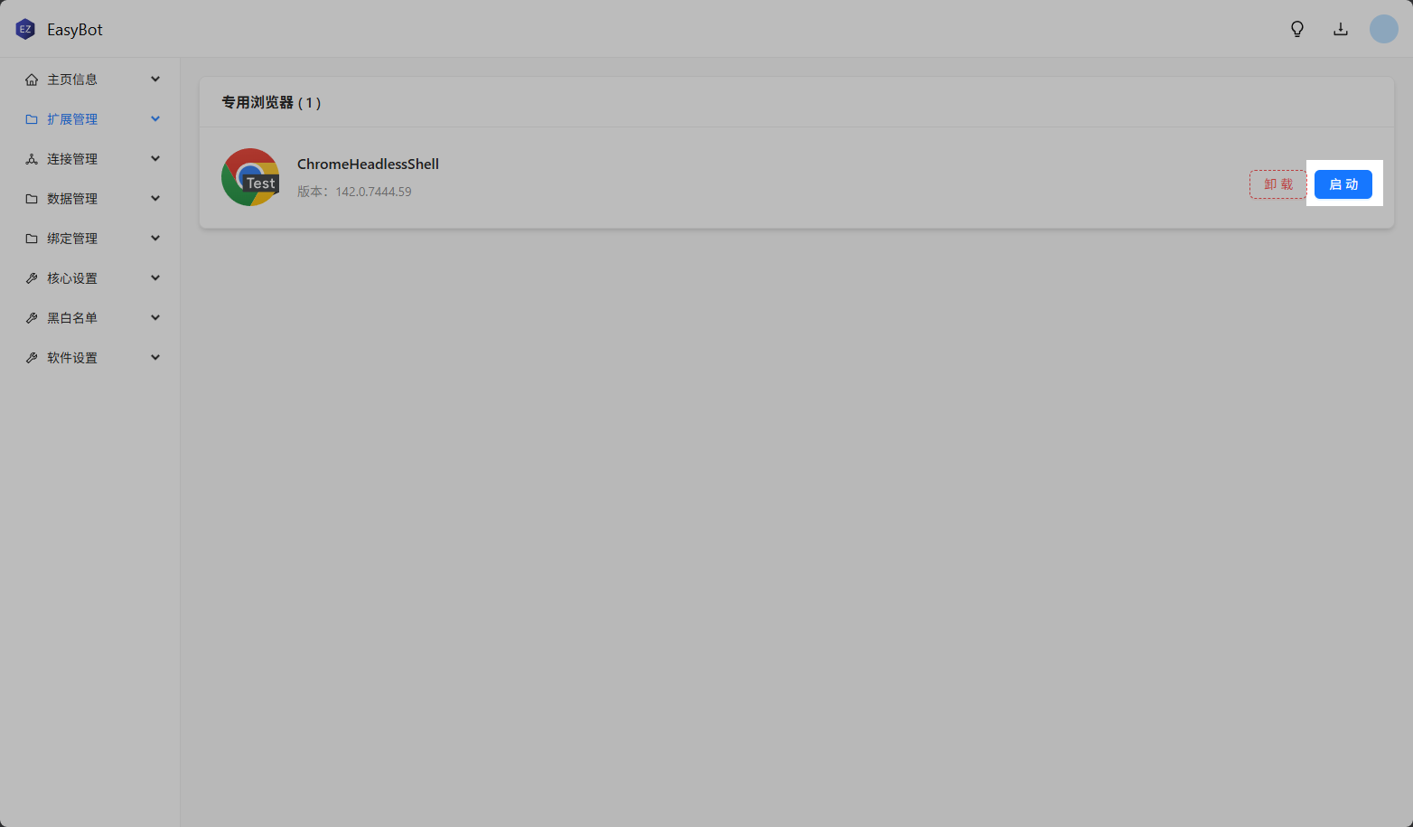在安装完成后,页面会自动刷新,你可以看到安装的浏览器,点击启动按钮进行启动