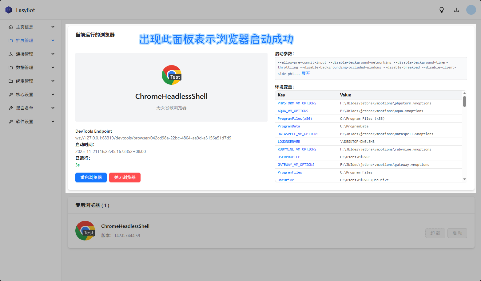 EasyBot建议您使用渲染器管理框架中的ChromeHeadlessShell[142.0.7444.59]进行图片渲染工作。