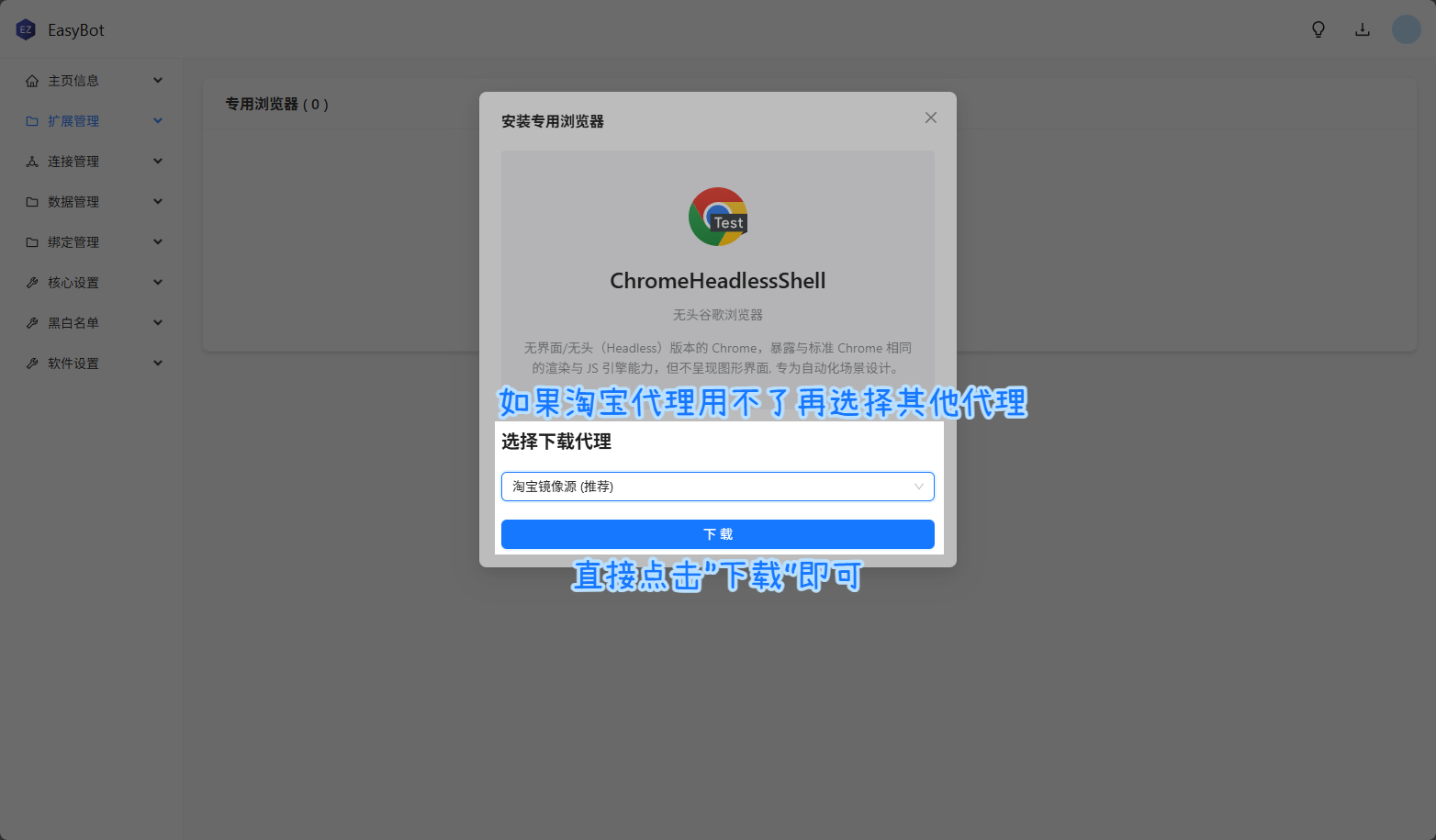 EasyBot建议您使用渲染器管理框架中的ChromeHeadlessShell[142.0.7444.59]进行图片渲染工作。
