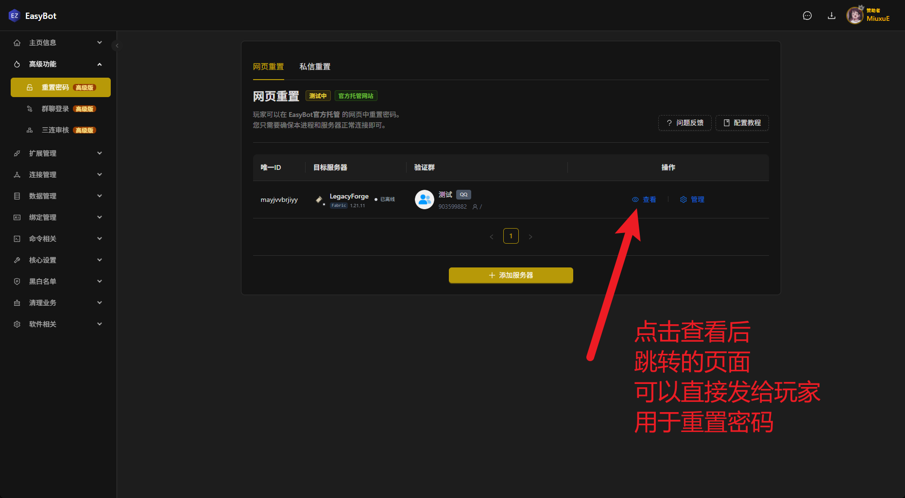 EasyBot托管的网站中重置密码,你只需要确认您的EasyBot和服务器正常连接即可