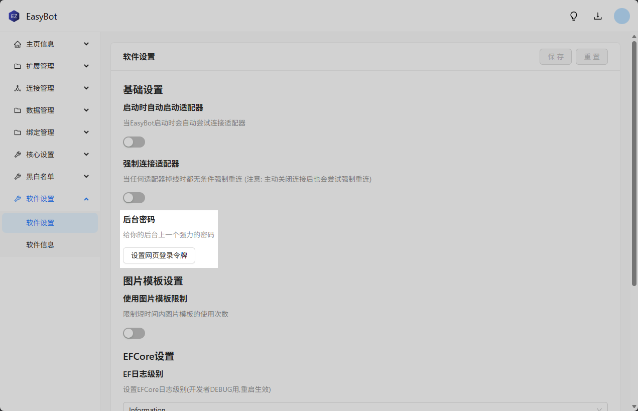 在部署到公网前,请为你的 EasyBot 面板设置一个密码。
