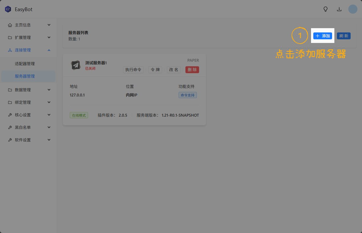 EasyBot的执行命令功能依赖RCON,如果你的服务器版本小于1.9 将无法使用命令执行功能,但是其他基本功能可以使用!